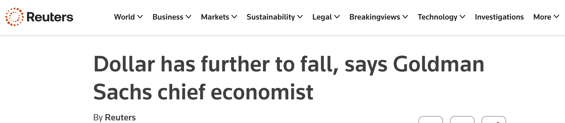 此外,路透社在此前报道指出,高盛首席经济学家Jan Hatzius表示,受到美国关税不确定性和经济衰退担忧的重创和打击,美元将进一步下跌。